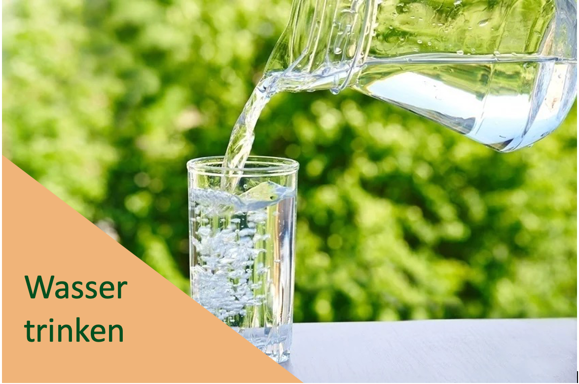 Unser Körper besteht zu etwa 60% aus Wasser. Wir benötigen Wasser für unsere Zellen, für den Nährstofftransport im Blut, aber auch zum Ausscheiden von Giftstoffen. Gerade bei den aktuell warmen Temperaturen kommt eine wichtige Funktion dazu: Schwitzen. Ob aufgrund warmer Außentemperaturen oder beim Sporttreiben. Durch Schwitzen kühlt sich unser Körper ab. Wenn Wind auf die kleinen Wassertröpfchen auf der Haut trifft, tritt ein kühlender Effekt ein. Für all die Funktionen des Wassers ist es wichtig, täglich mindestens 1,5 Liter zu trinken. Bei bestimmten Bedingungen sollte die Trinkmenge sogar auf 2 Liter gesteigert werden. Zu den Bedingungen gehören Hitze, Erkrankungen (Fieber, Durchfall) und das Treiben von Sport. Vor allem ältere Menschen sollten die ausreichende Flüssigkeitszufuhr nicht vernachlässigen. Dabei ist Wasser die beste Wahl, um den Flüssigkeitsverlust auszugleichen. Es sollte darauf geachtet werden, dass im Wasser ausreichend Elektrolyte vorhanden sind (Natrium, Calcium, Kalium, Magnesium) um den Verlust dieser durchs Schwitzen auszugleichen. Daher: nimm Dir Deine Wasserflasche und genieße Dein Wochenende!